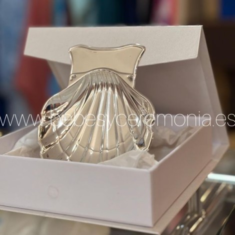 Regalo ideal, la concha de bautismo plateada. Será un elemento imprescindible en la ceremonia del bautismo, tendrá un recuerdo para toda la vida. Se presenta en estuche especial. Posibilidad de grabado.