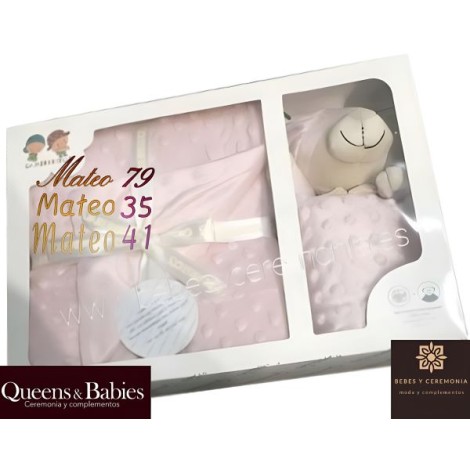 Regalo perfecto y completo, de manta con topos y dodu a juego