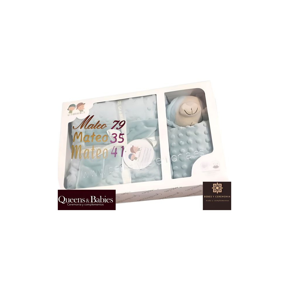 Regalo perfecto y completo, de manta con topos y dodu a juego