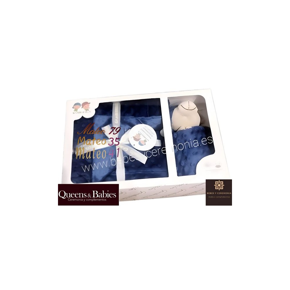 Regalo perfecto y completo, de manta con topos y dodu a juego
