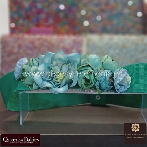 Elegante cinturón floral con goma, para dar ese toque al vestido y completar tu look de invitada perfecta para tus evento.