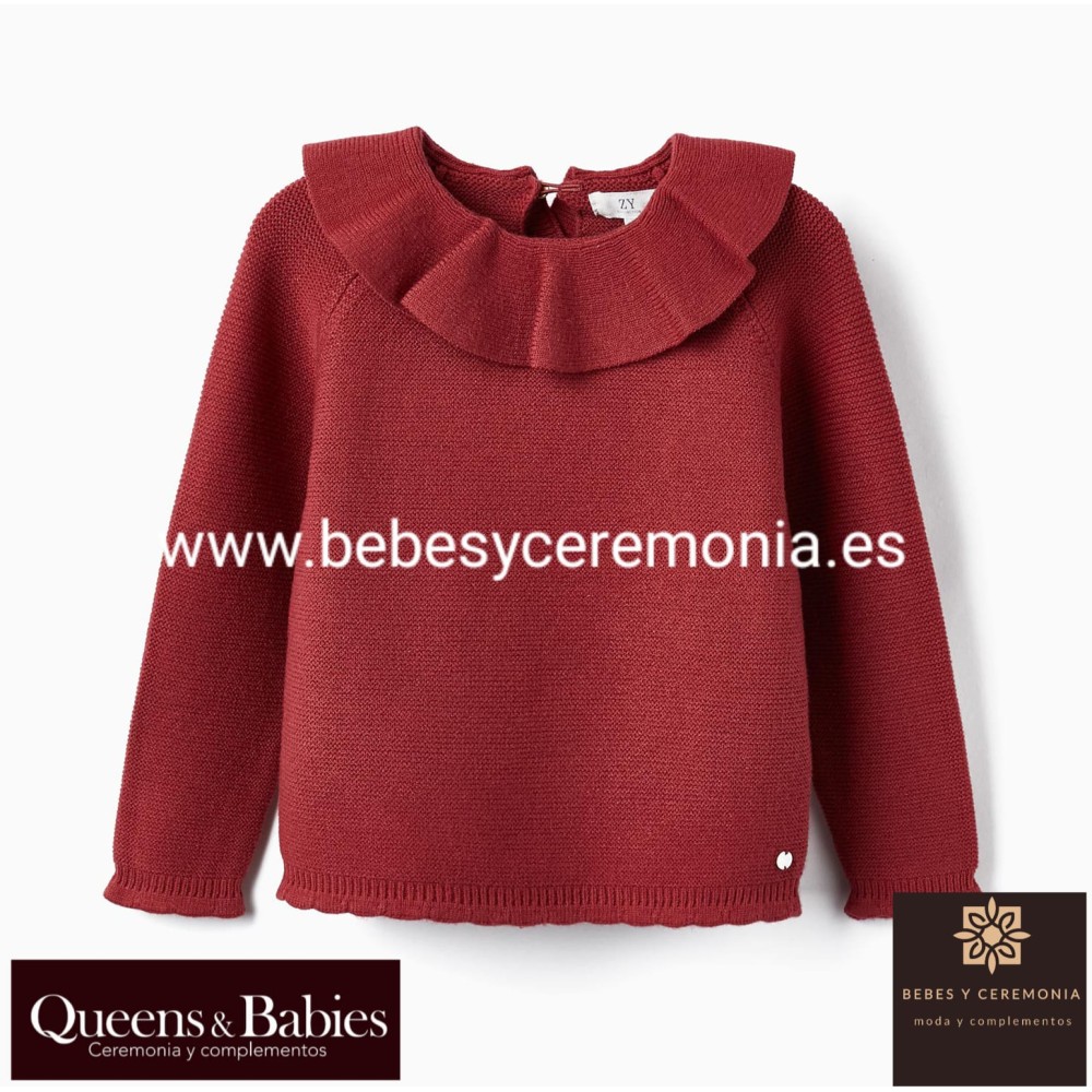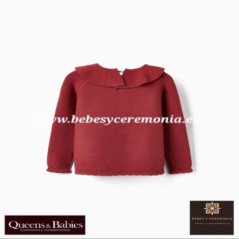 Jersey de punto rojo con volantes