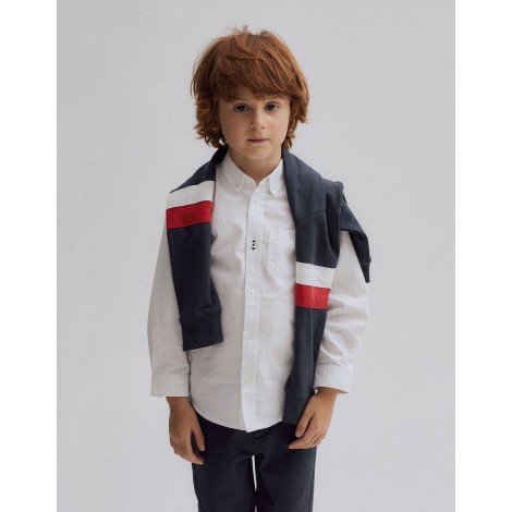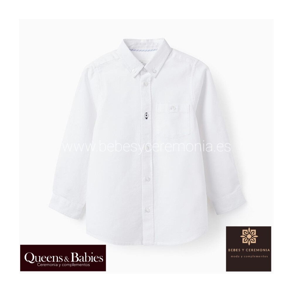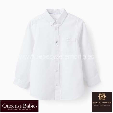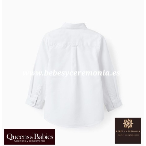 Camisa blanca de manga larga para niño.