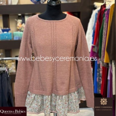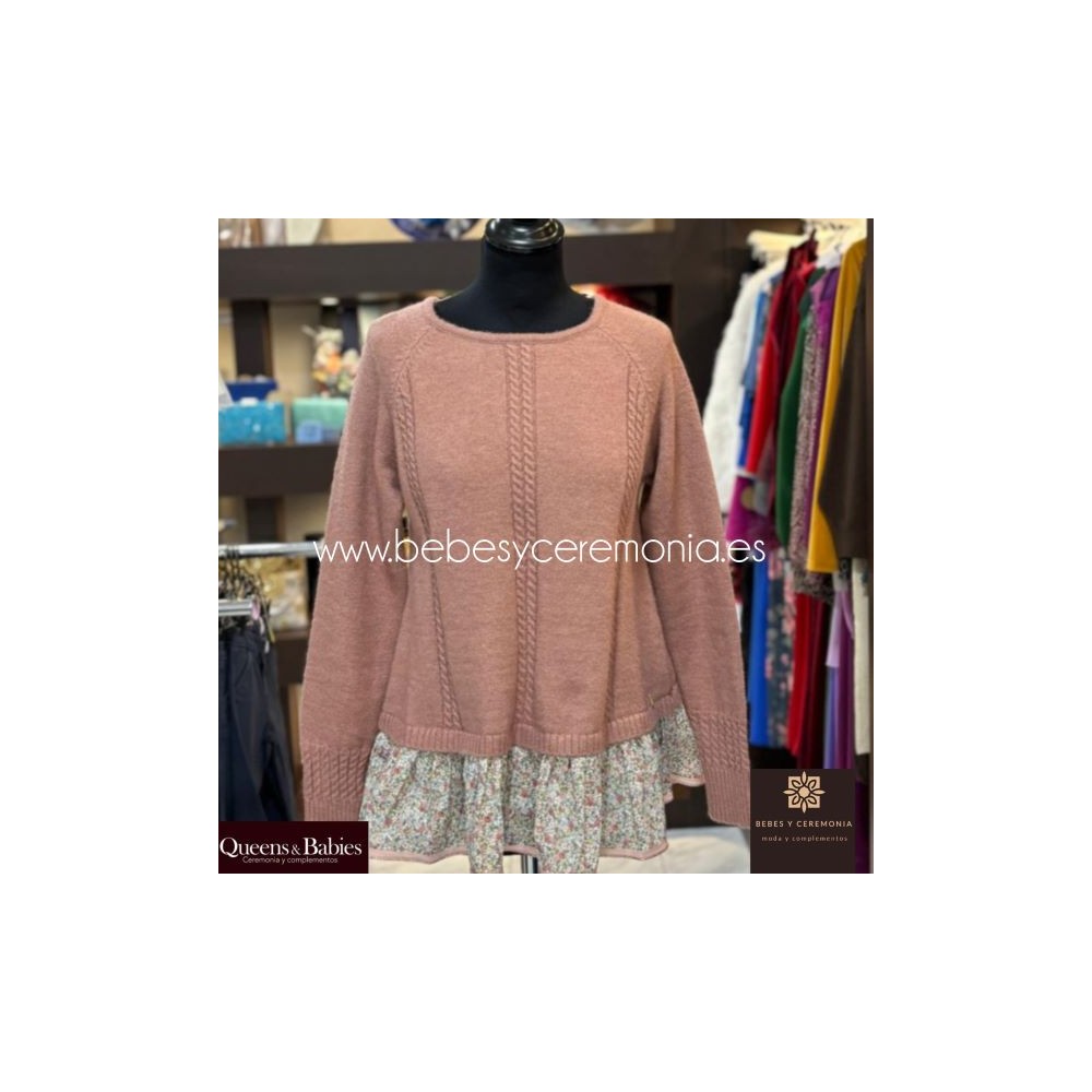 Jersey de mujer que combina el punto con volante en la parte inferior