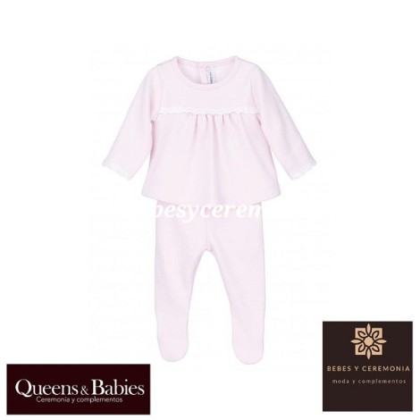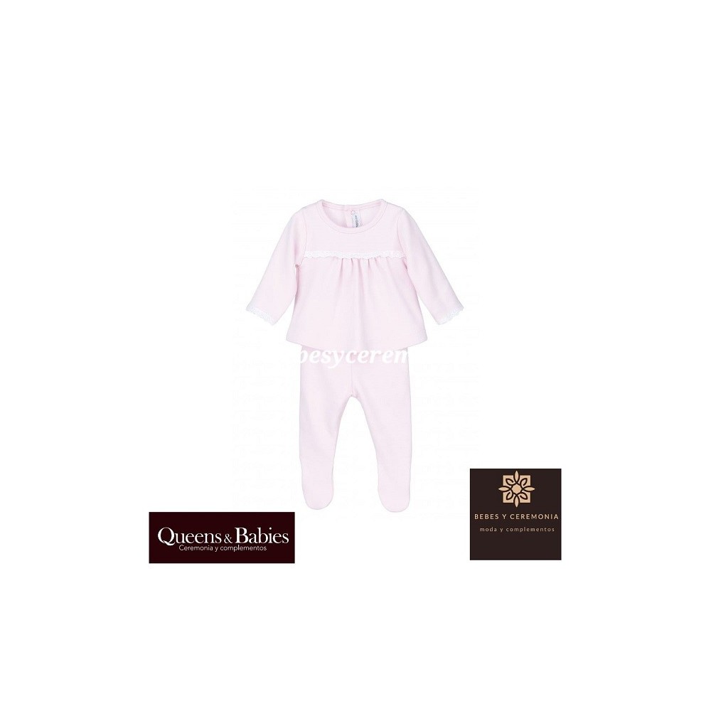 Conjunto polaina 2 piezas con jersey de manga larga y cenefa. La polaina en tono liso.