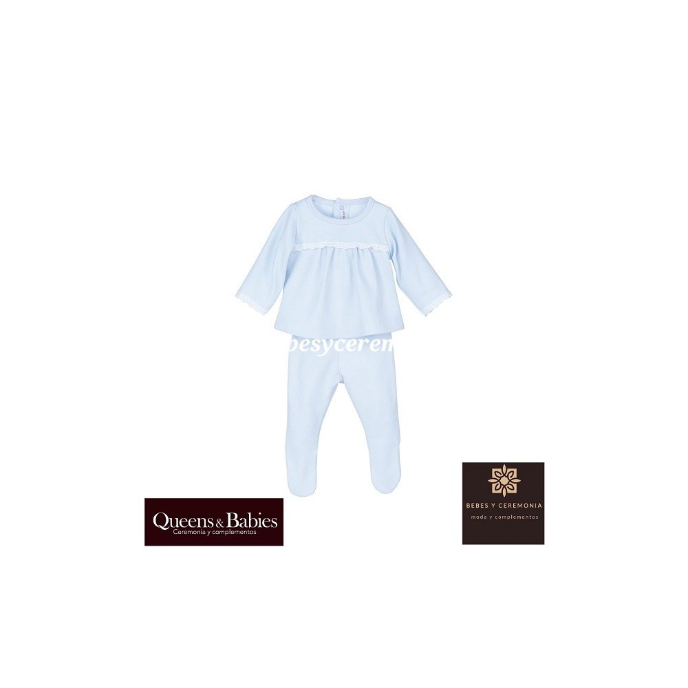 Conjunto polaina 2 piezas con jersey de manga larga y cenefa. La polaina en tono liso.