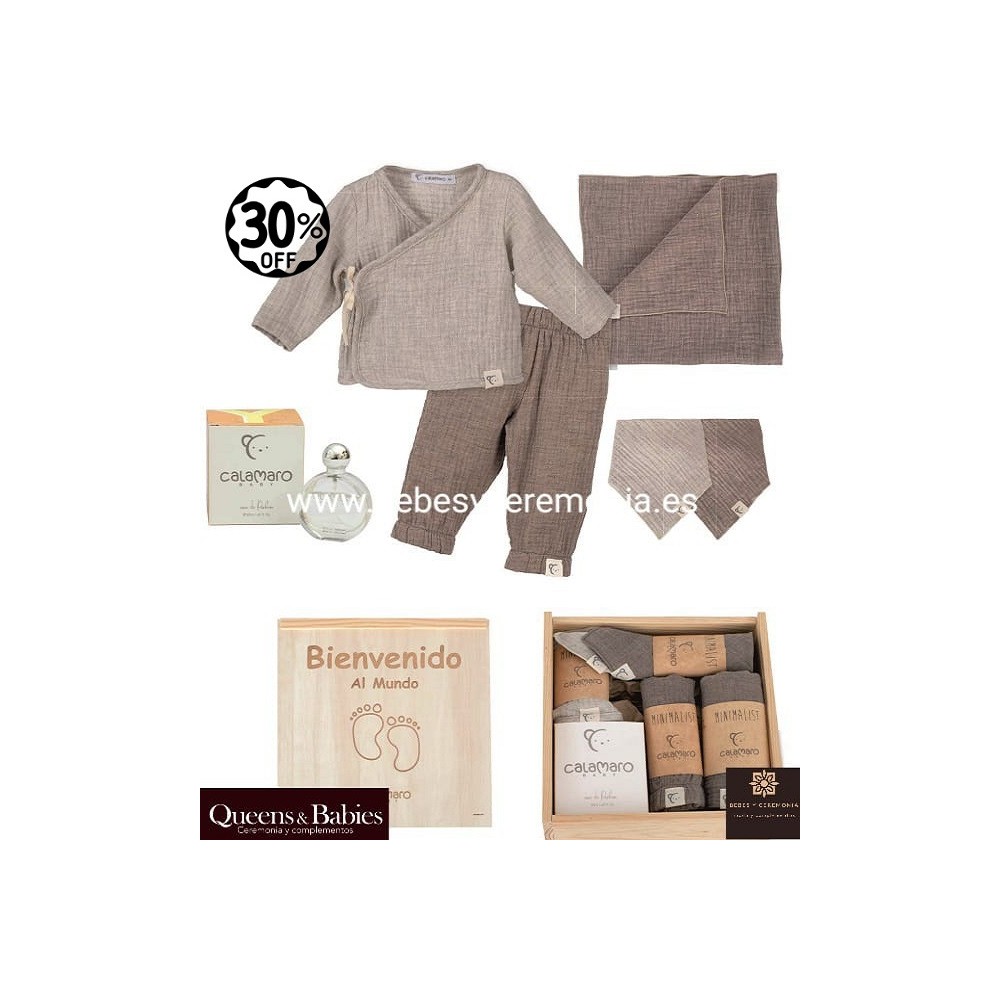 Set de nacimiento bebé con caja de madera, un set de lo más completo y práctico para regalar. Estos conjuntos, están pensados para que el bebé no pierda el calor corporal después del nacimiento.