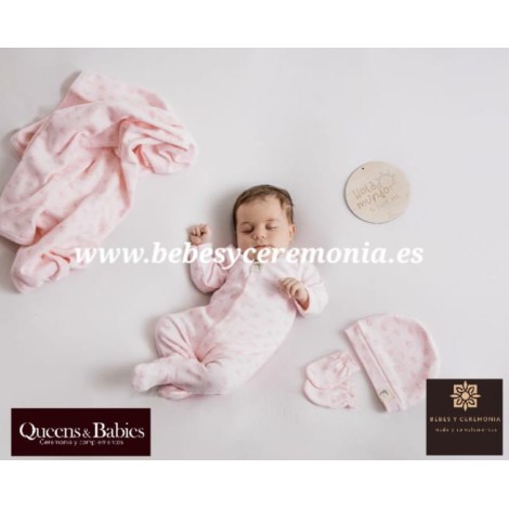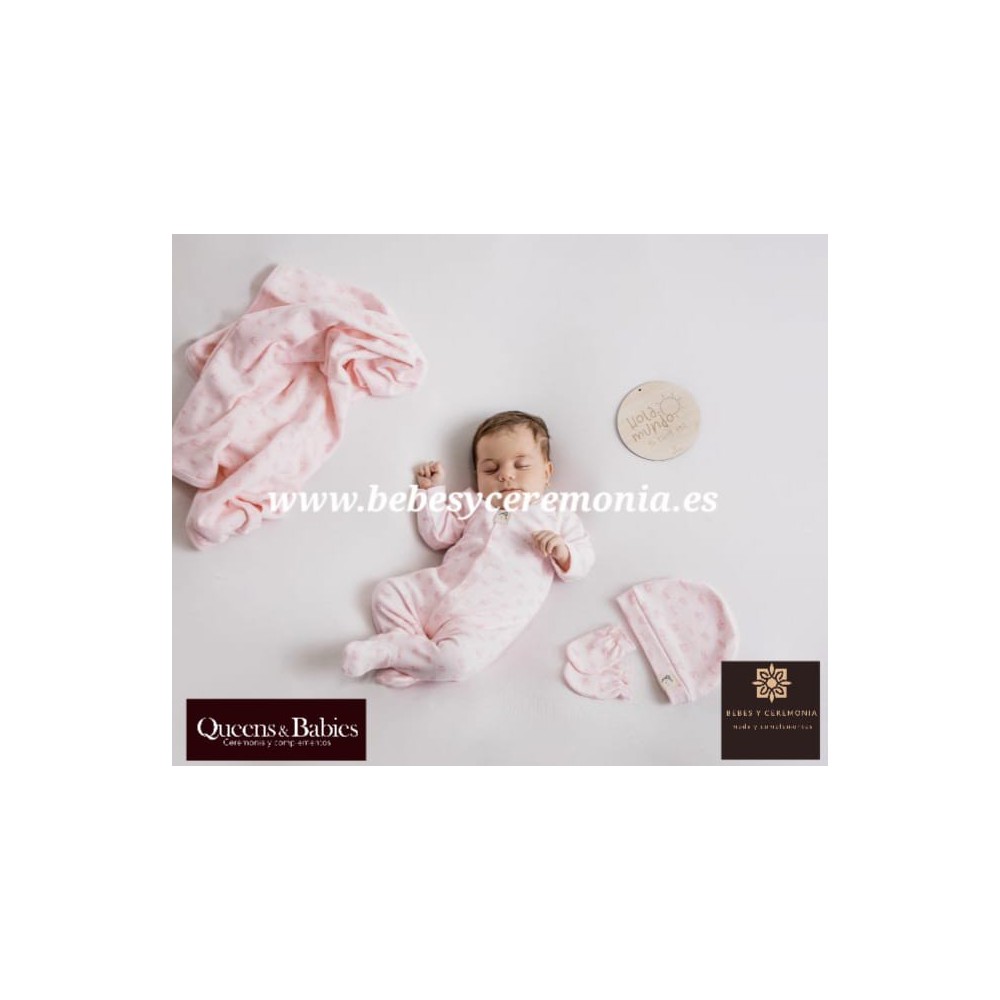 Pelele o pijama de manga larga. Apertura frontal con presillas, ideal para vestir al bebé y con facilidad de poner y quitar.