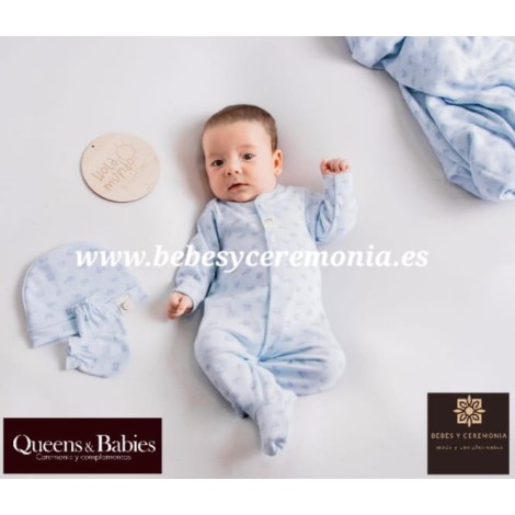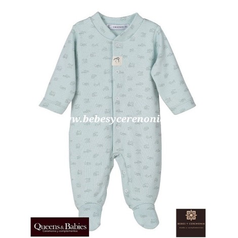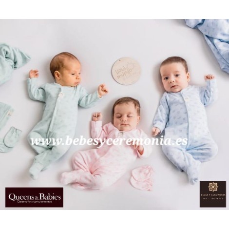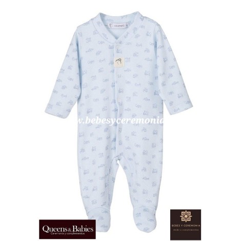 Pelele o pijama de manga larga. Apertura frontal con presillas, ideal para vestir al bebé y con facilidad de poner y quitar.