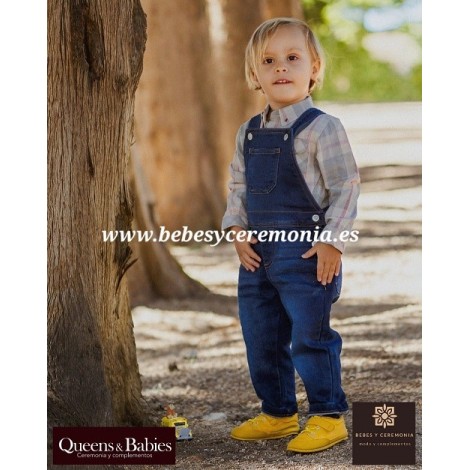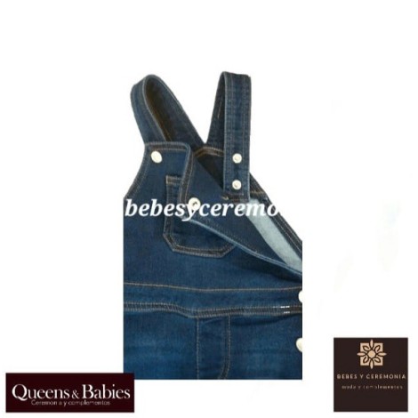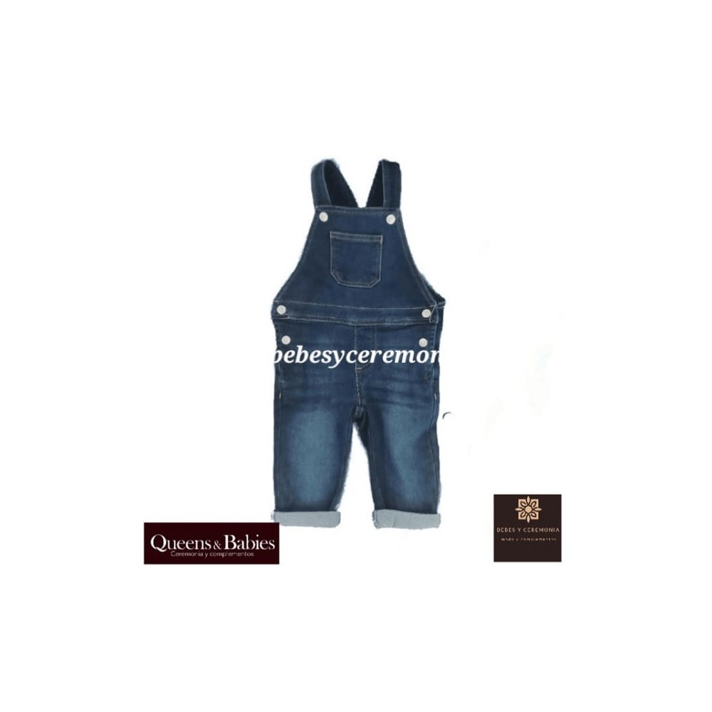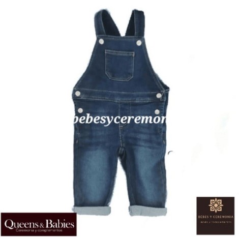 Peto pantalón largo vaquero azul, para bebé niño, en denim de algodón con gran elasticidad para mayor comodidad y libertad de movimiento.