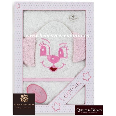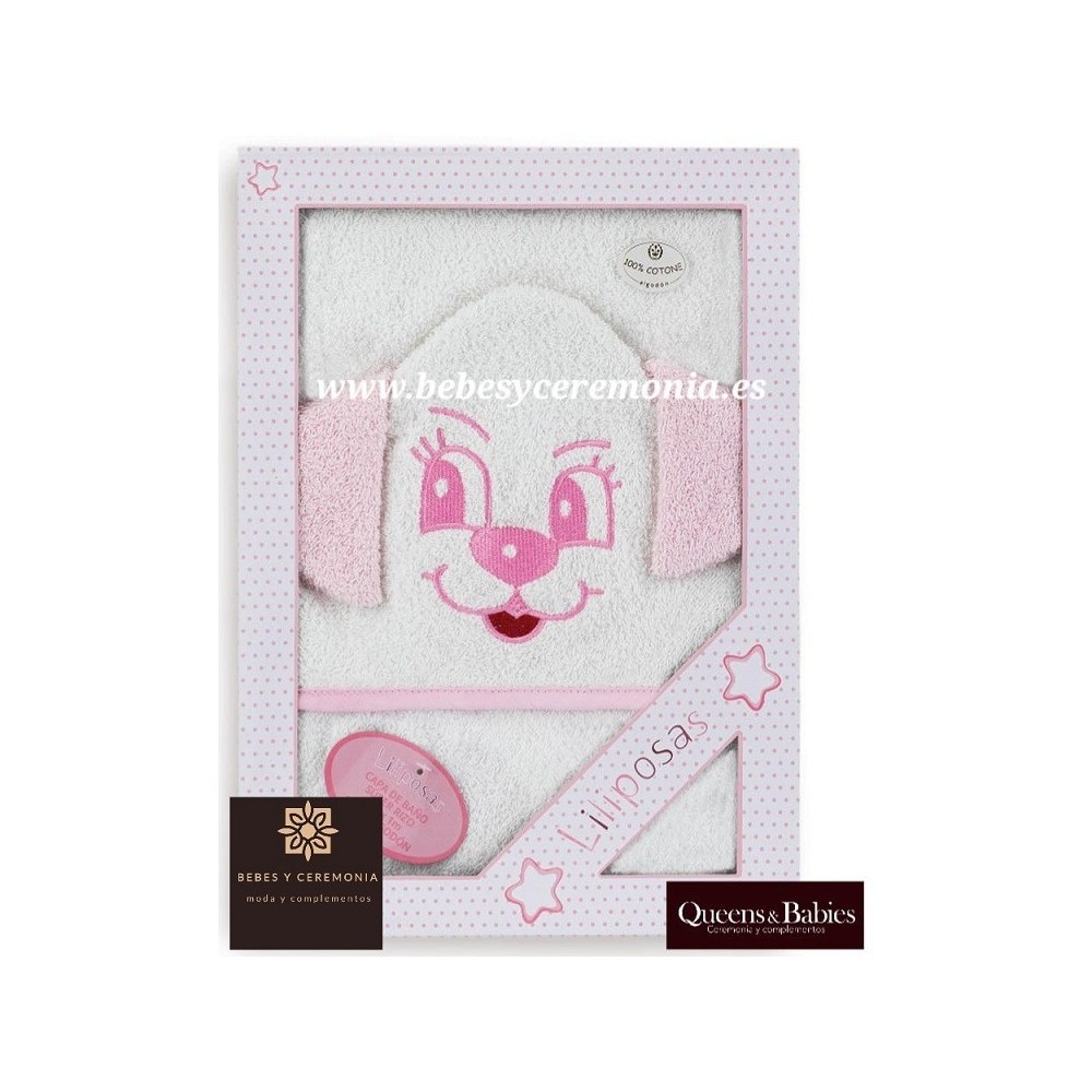Capa de baño bordada con su alegre perrito, con capucha que se puede lavar en la lavadora, muy útli para el baño de tú bebé