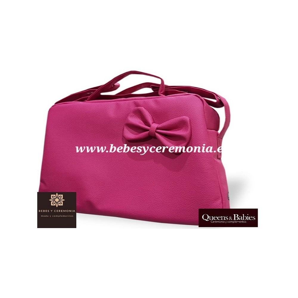 Bolso Edurne de polipìel con un pequeño lado en el mismo tono que el bolso. Tiene asa para colgar del carro y dos bolsillos internos. Fabricado y diseñado en España.