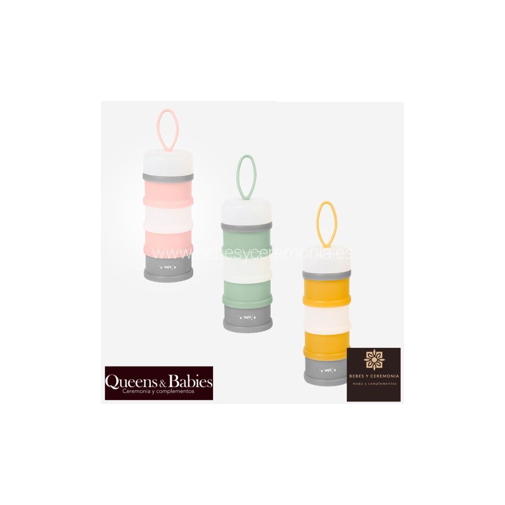 La tapa del recipiente se enrosca e incluye un pequeño tapón que permitirá verter la leche en polvo directamente en el biberón con comodidad y rapidez, simplemente girando la tapa sobre el recipiente a vaciar y volcando en el biberón o taza con el taponcito descubierto.