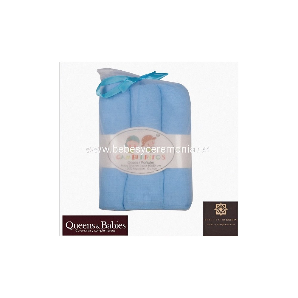 Pack de 3 gasas de muselina de algodón bebé, de un color liso.