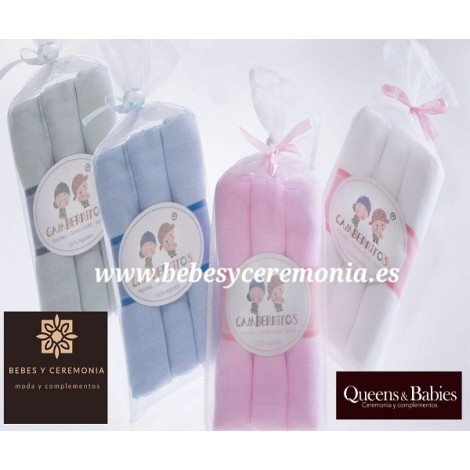 Pack de 3 gasas de muselina de algodón bebé, de un color liso.
