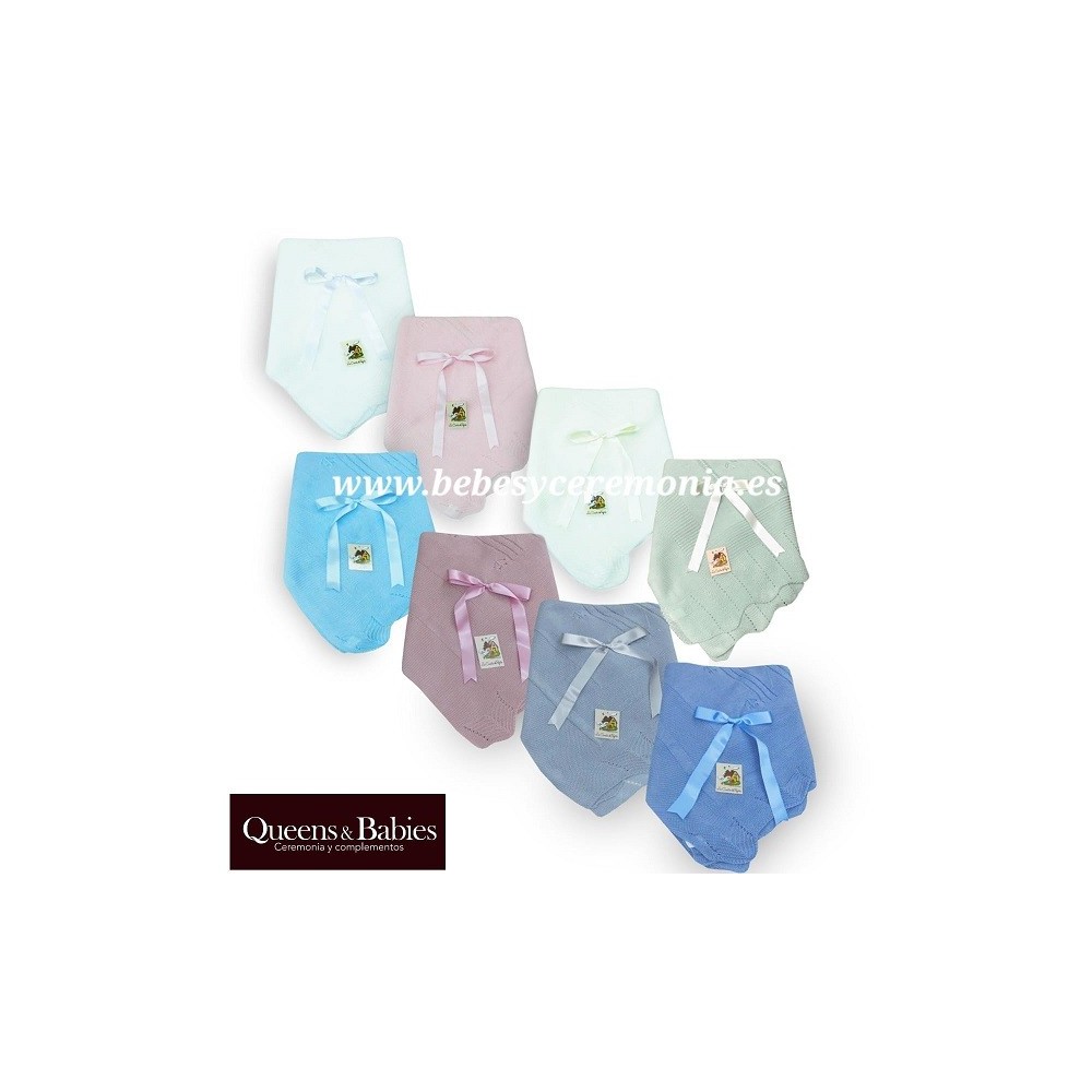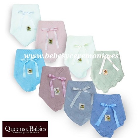 Toquilla de perlé, perfecta para la época de menos frío, con detalles calados en su punto de perlé. Destacado lazo de raso y corte ondulado. Confeccionado en lana de alta calidad en la que se ha usado fibra de Dralón hipoalergénica para una mayor comodidad y durabilidad