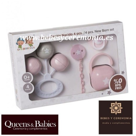 Juego de recién nacido de cuatro piezas, la diversión la tiene garantizada.