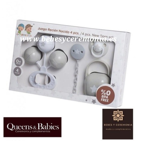 Juego de recién nacido de cuatro piezas, la diversión la tiene garantizada.