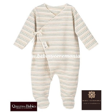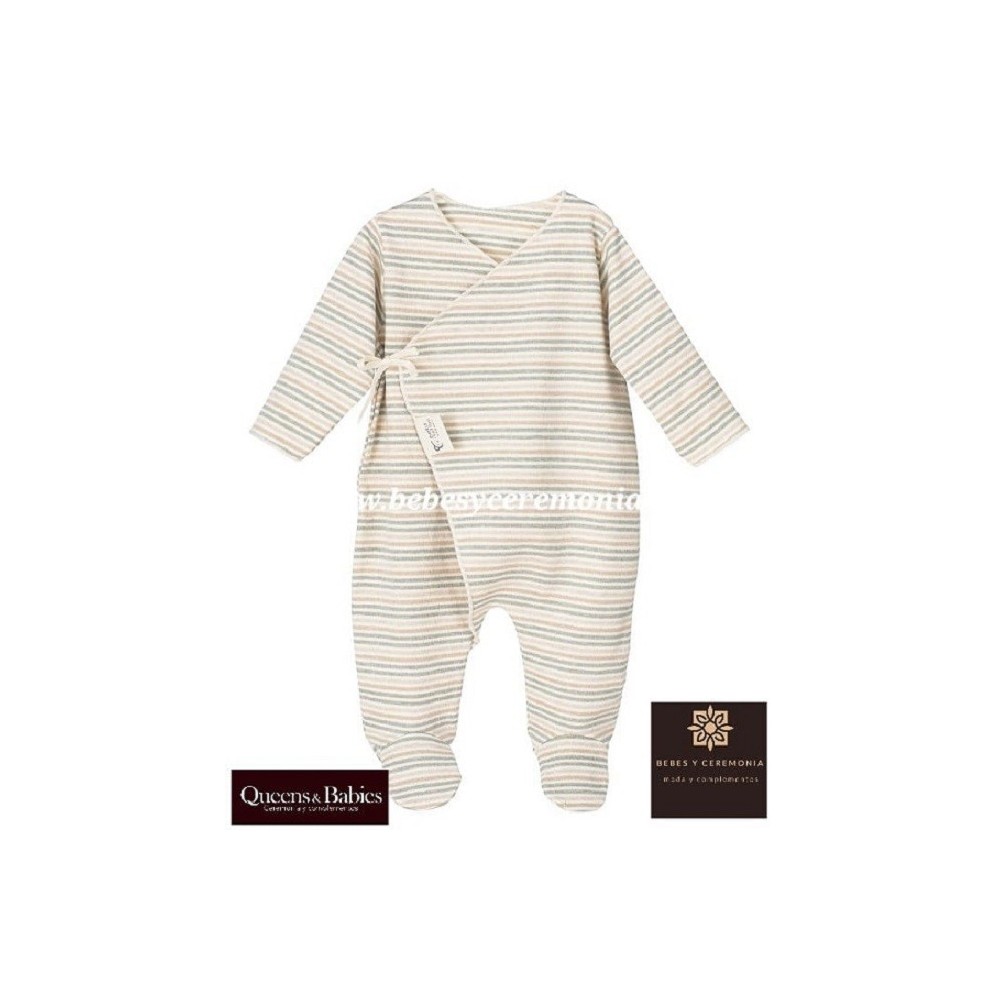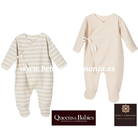Pelele o pijama de manga larga algodón orgánico, es una prenda que no debe de faltar en el armario de tú bebé. Cruzado por delante con lazada, muy cómodo de poner y quitar.