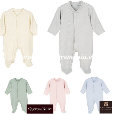 Pelele o pijama de manga larga. Abertura frontal con presillas, ideal para vestir al bebé y con facilidad de poner y quitar.