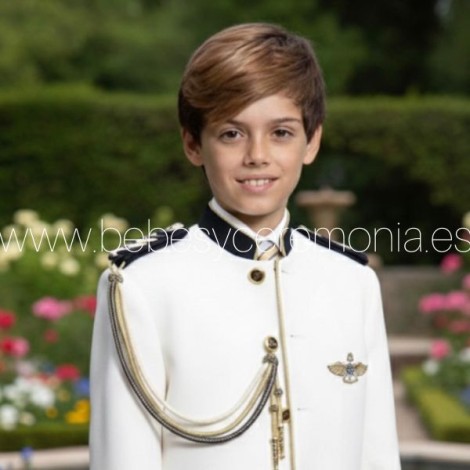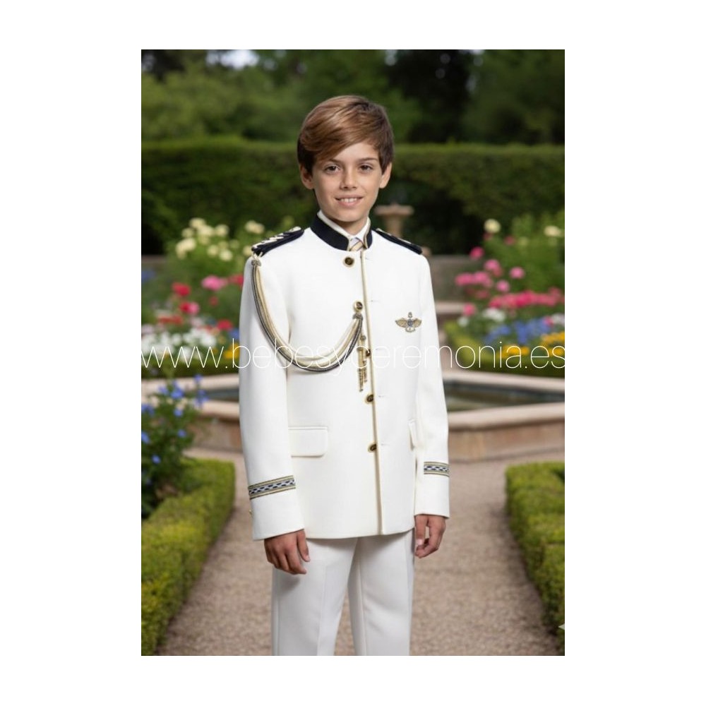 Compuesto por 5 piezas: chaqueta, pantalón, chaleco, corbata y cadetera.