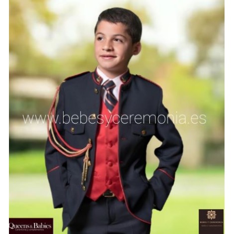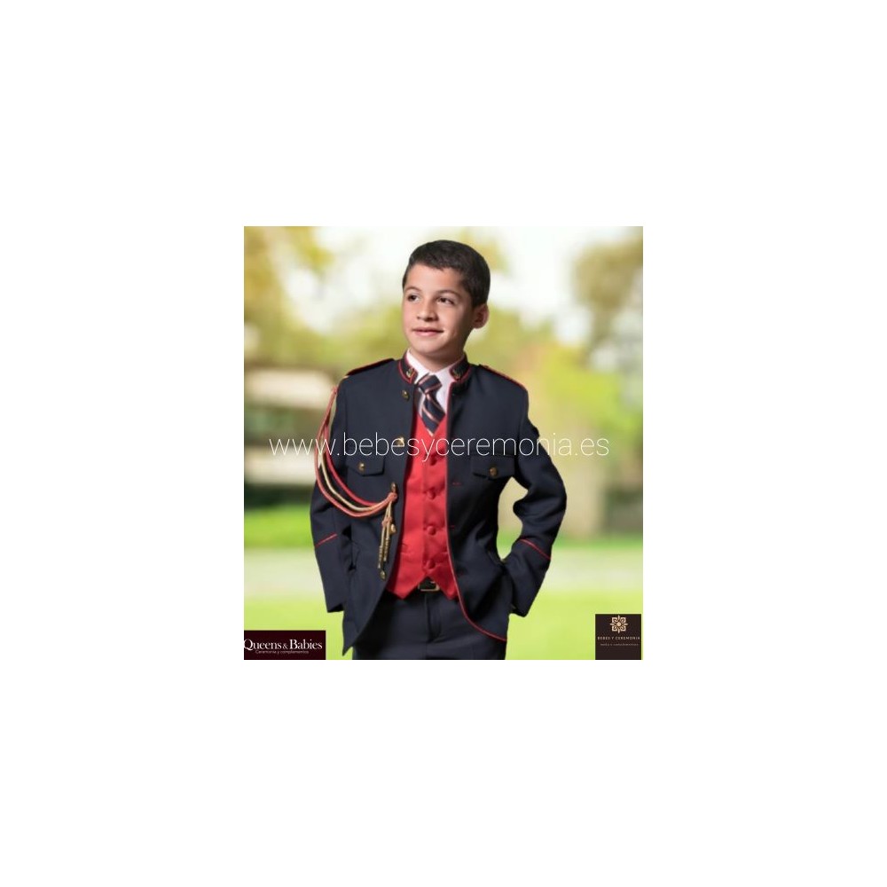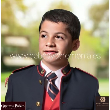 Incluye cadetera con cabetes a juego con el color del traje. Además tiene botón bombé oro con ancla grabada.