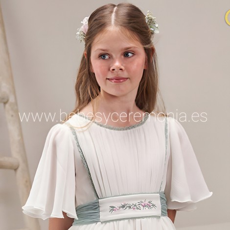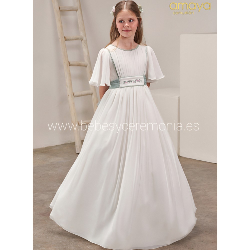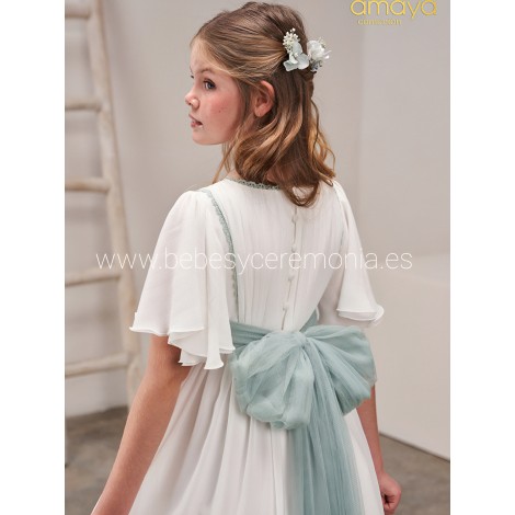Vestido de Comunión de estilo romántico, con el estilo personalizado de la firma Amaya.