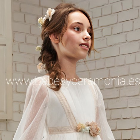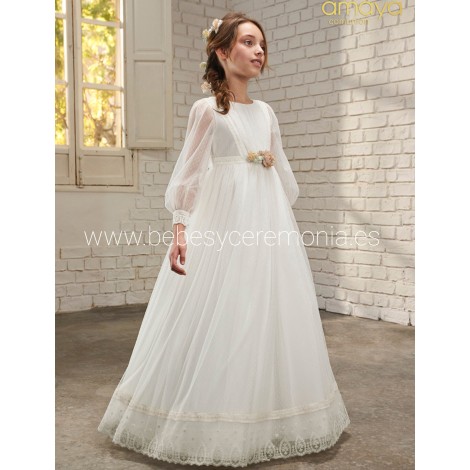 Vestido de Comunión de estilo romántico, con el estilo personalizado de la firma Amaya.