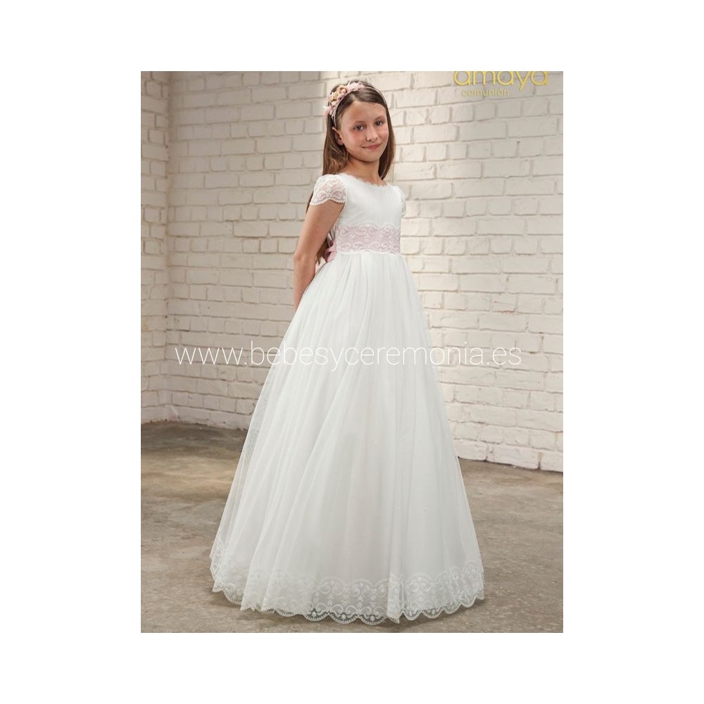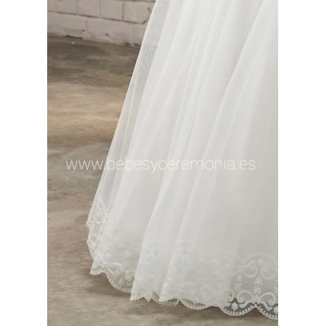 Vestido de Comunión de estilo romántico, con el estilo personalizado de la firma Amaya.