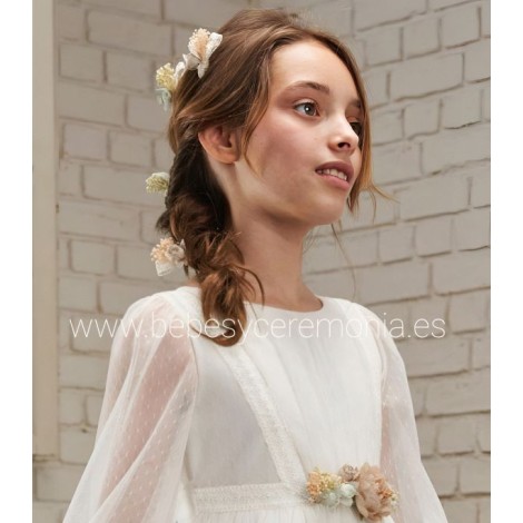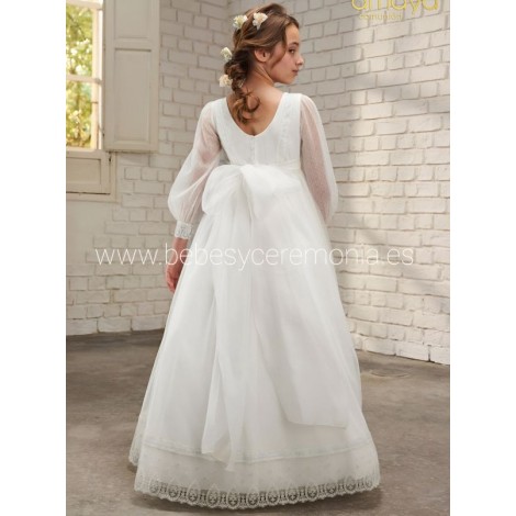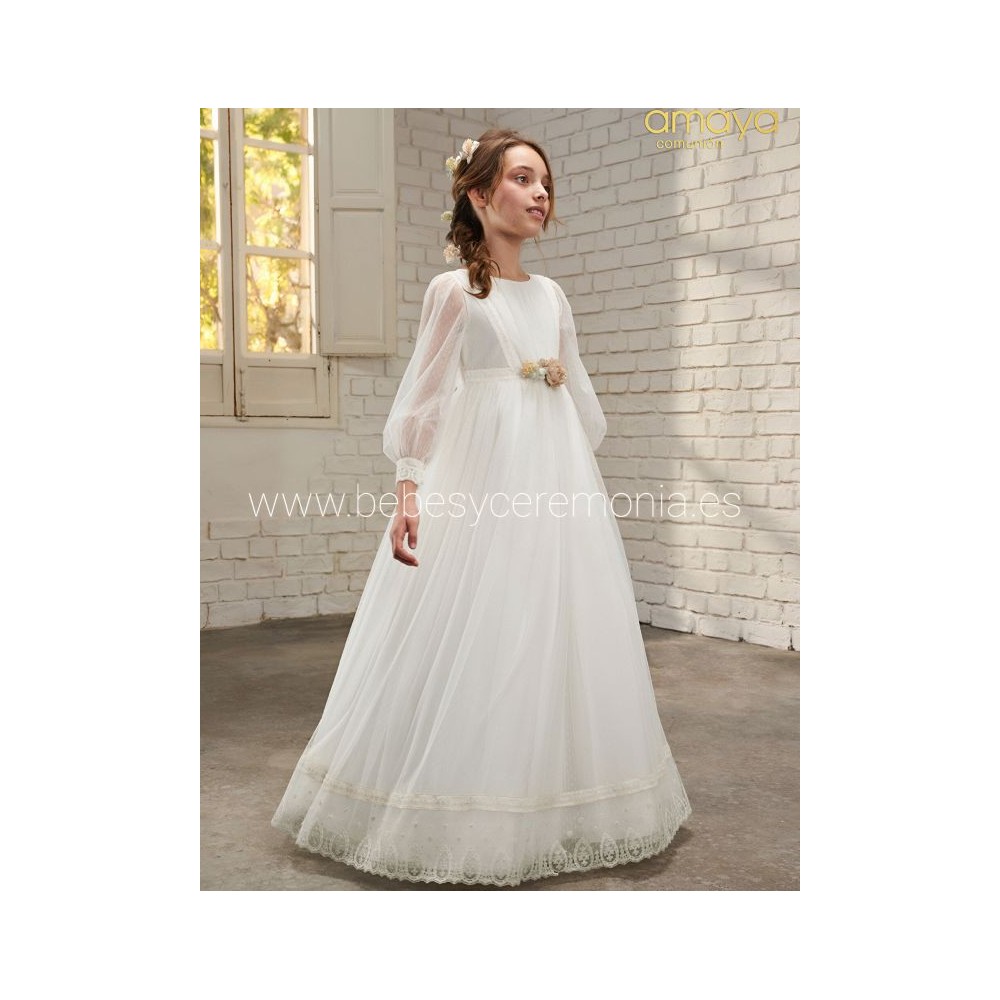 Vestido de Comunión de estilo romántico, con el estilo personalizado de la firma Amaya.