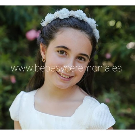 Vestido de Comunión de estilo romántico, con el estilo personalizado de la firma nacional DeBlanco.