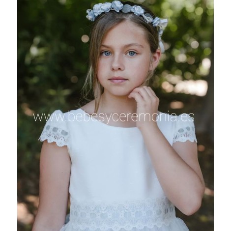 Vestido de Comunión de estilo romántico, con el estilo personalizado de la firma nacional DeBlanco.
