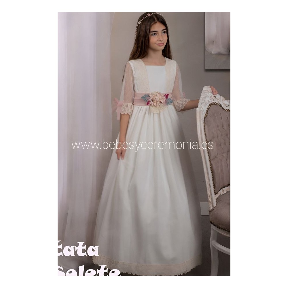 Vestido de Comunión de estilo romántico, con el estilo personalizado de la firma nacional Tata Solete.