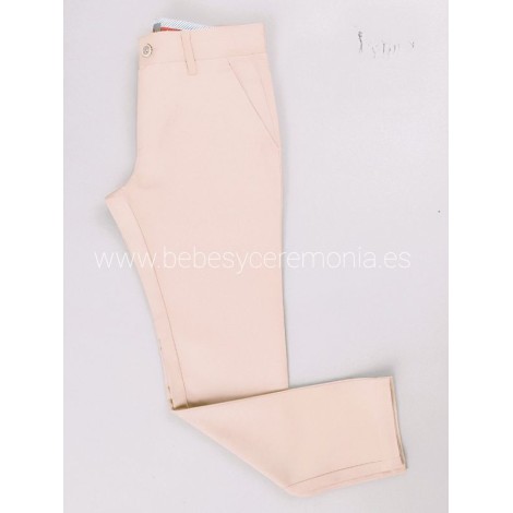 Pantalón chino de sarga en tono arena. Confeccionado en algodón con mezcla de elastano.